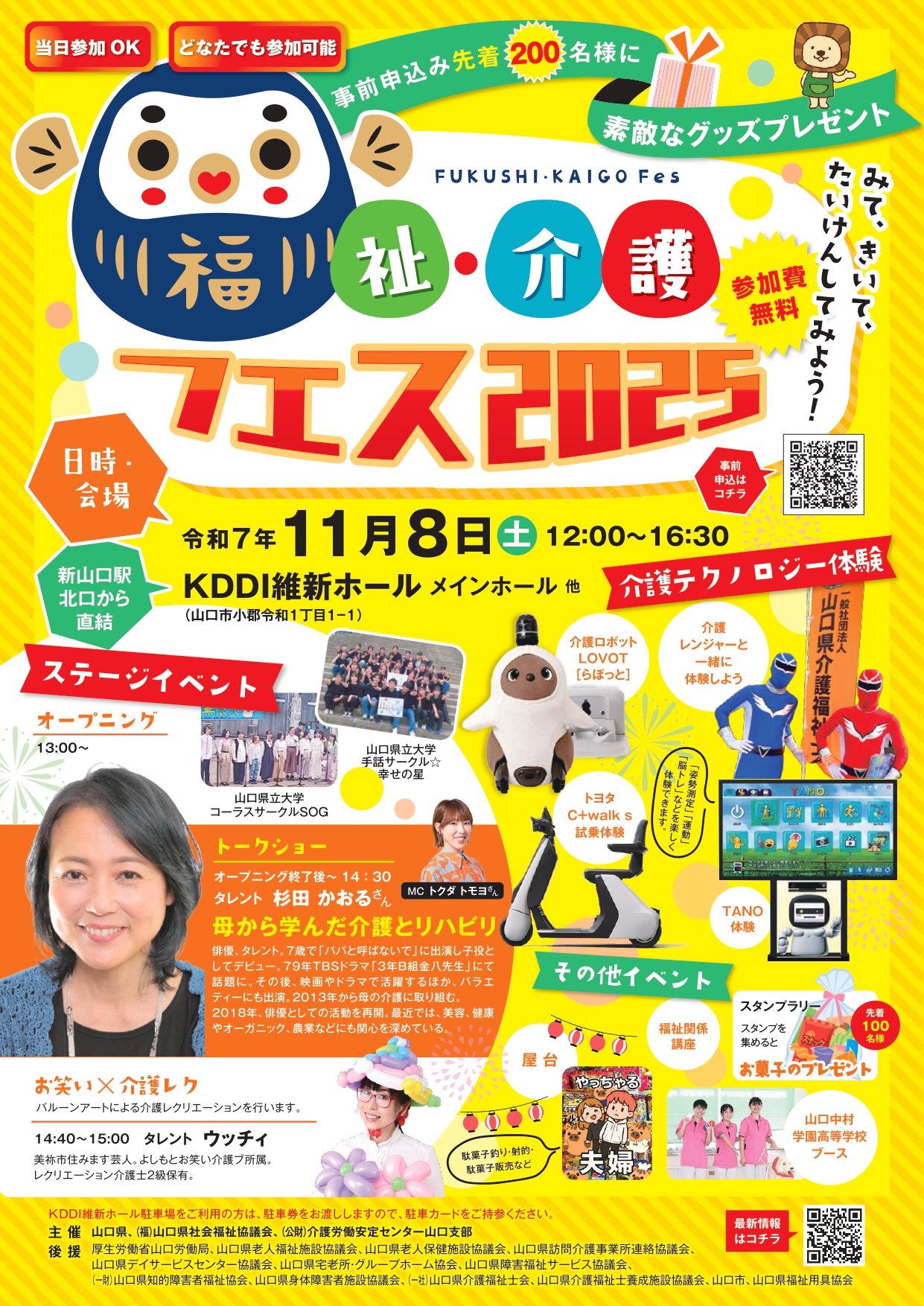山口県、山口県福祉人材センター及び介護労働安定センター山口支部では、福祉・介護のしごとのやりがいや魅力を広く社会へ発信する「福祉・介護フェス2025」を開催します。