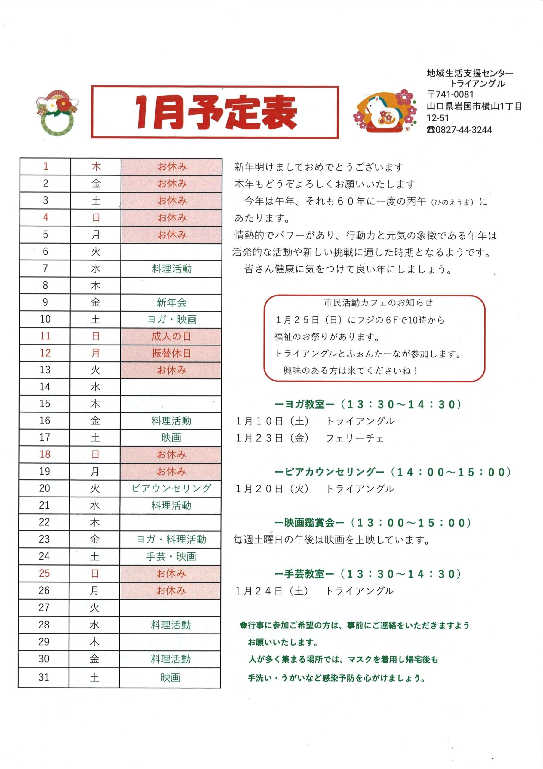 (「地域生活支援センタートライアングルより機関紙「Sereno~セレーノ~」2026年 1月号」チラシより)