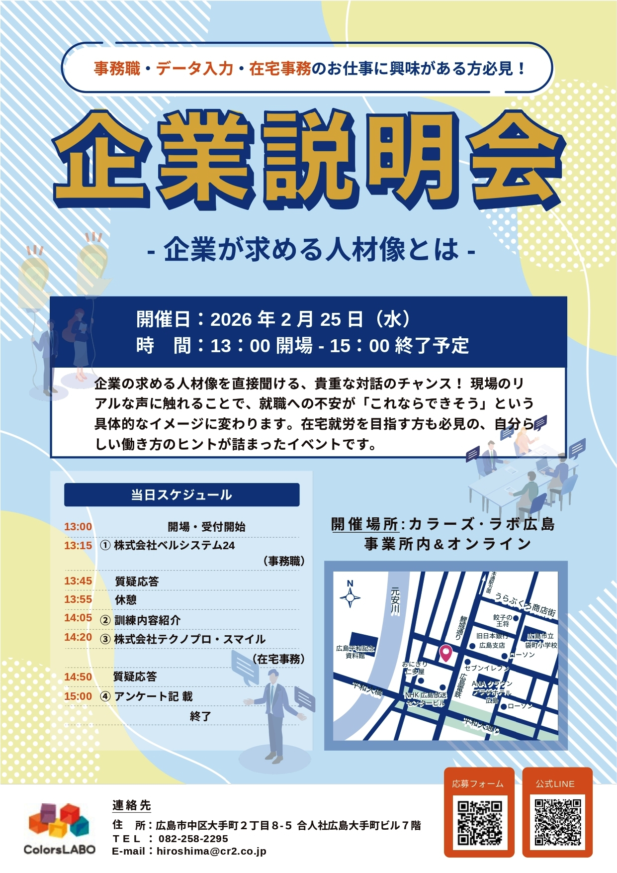場所: カラーズ・ラボ広島事業所内&オンライン 地図はこちら