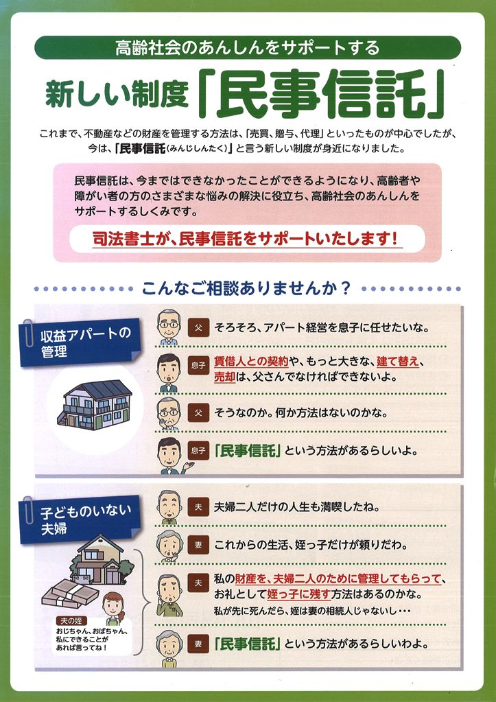 (「高齢社会のあんしんをサポートする 新しい制度 民事信託」チラシより)