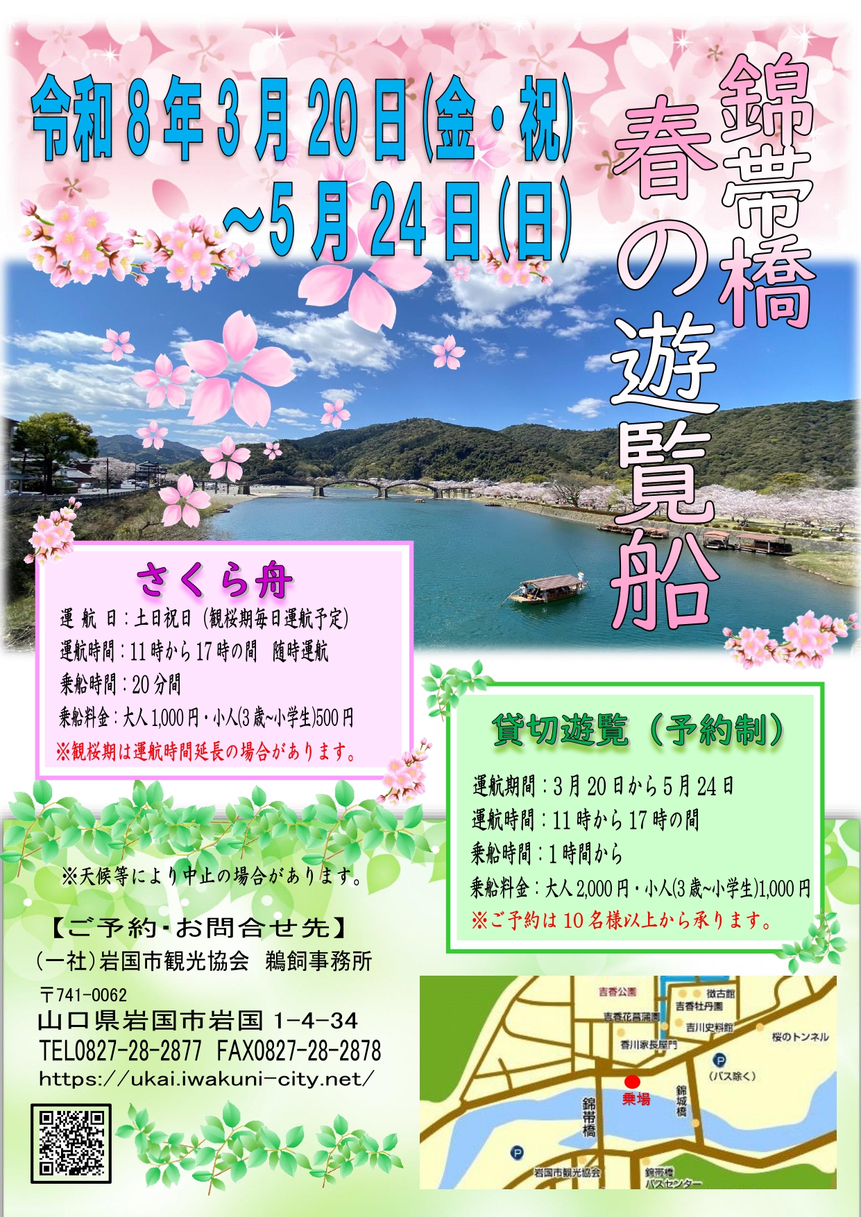 錦帯橋 春の遊覧船「さくら舟」3/20~5/24