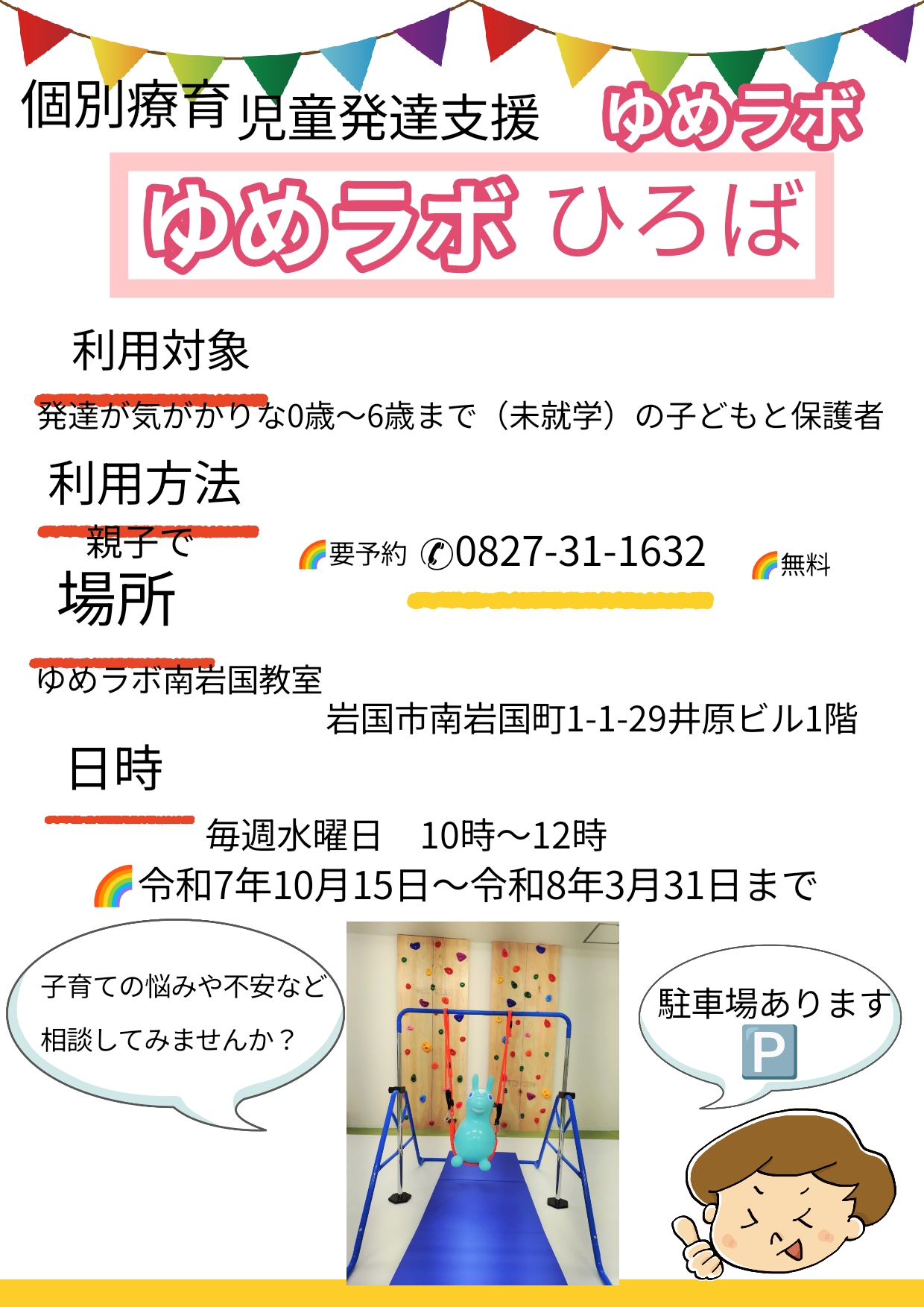 ゆめラボひろばでは、「発達が気がかりな0歳~6歳(未就学)の子どもたちと保護者さまを