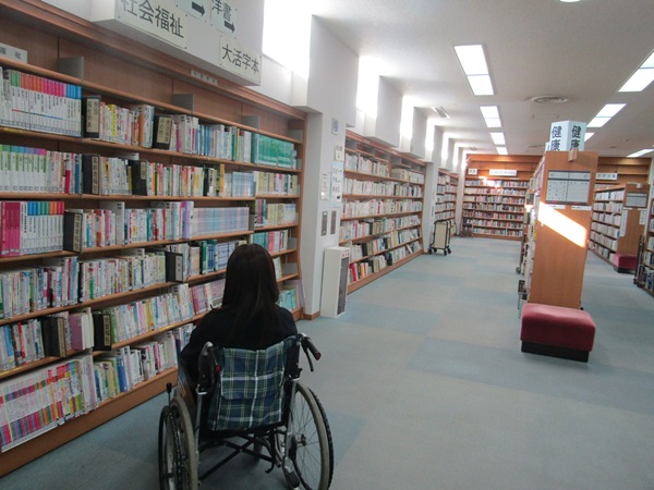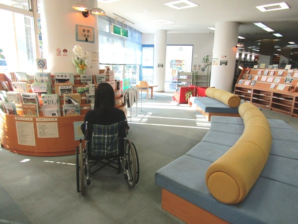 - 17. 図書室内バリアフリーで車椅子移動は快適です。車椅子で本に手が届かない場合は受付へ申し出れば対応していただけるそうです。