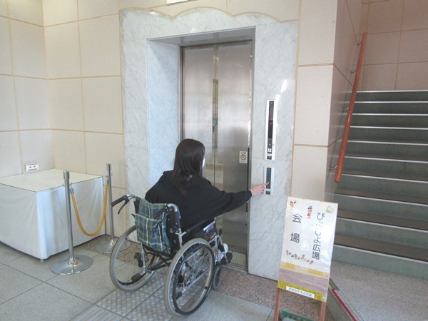 - 7. 障害者(車椅子)エレベーターと多目的トイレ案内。