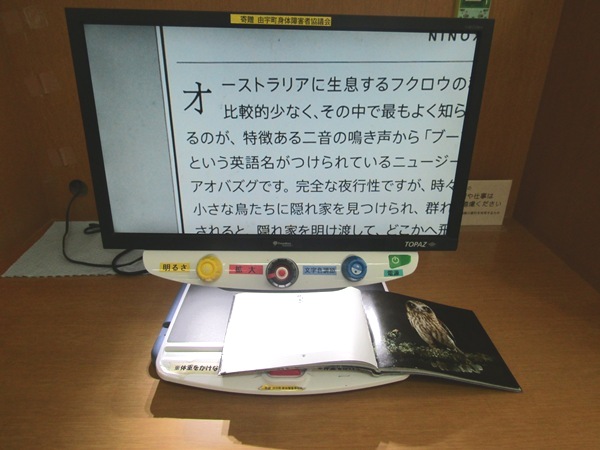 - 4. 拡大読書機。背景白黒反転可能。