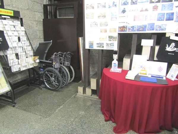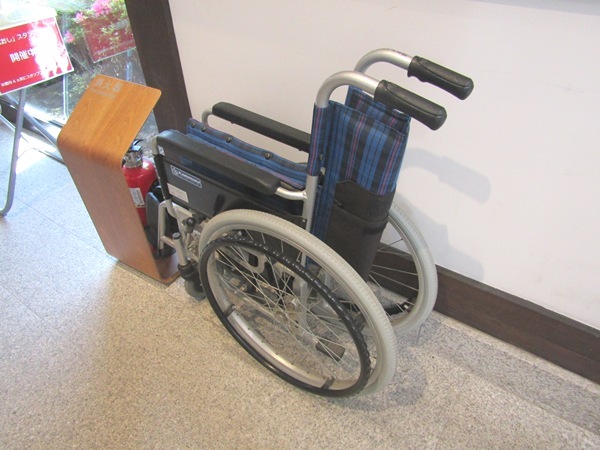 - 車椅子貸出用1台あり。使用の際は受付にお申し出ください。 ※お写真の場所に常設しておりませんので、使用したい場合は受付までお伝えいただく必要がございます。