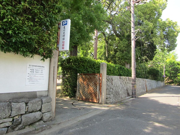 - 吉川史料館前です。昔の立派な門構えですが石段の為車椅子の場合駐車場へお回りください。
