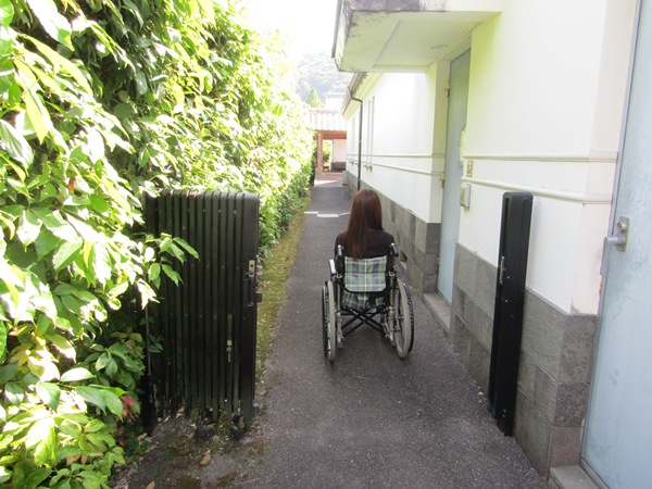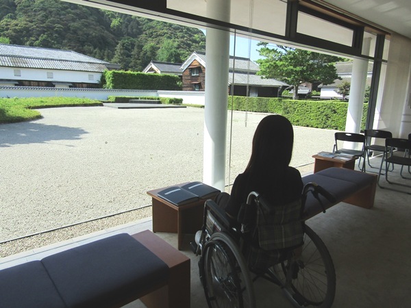 - 障害者用駐車場より直接史料館へ。(車椅子専用ルート)アコーデオン門扉がありますで、開けてお入りいただけます。