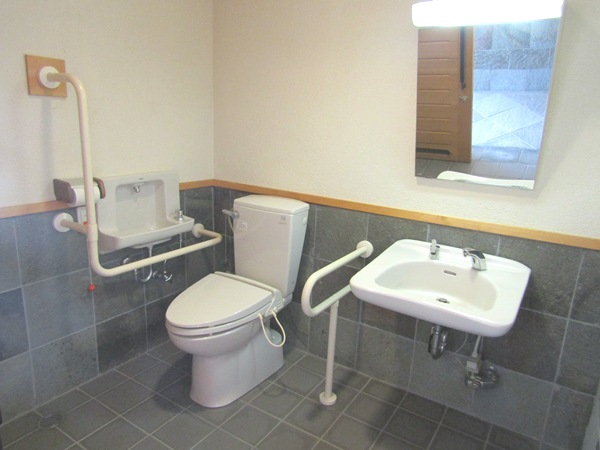 - 車椅子専用ルートを進むと障害者用トイレがあります。