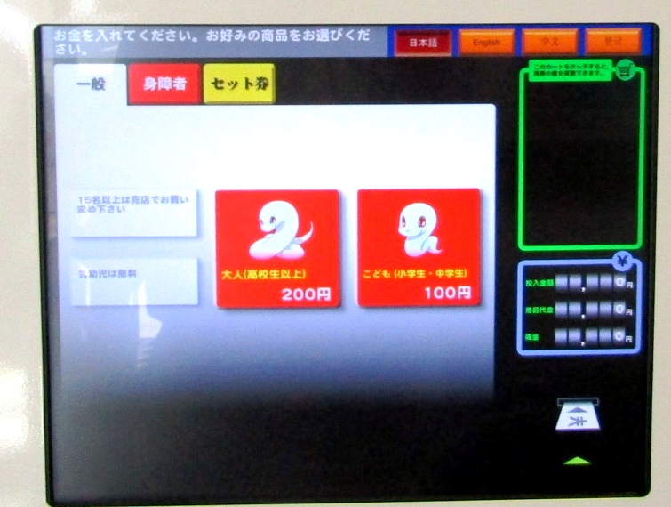 - 入館すると右が発券機。障害者の方は手帳を見せれば係員にチケット購入手続きしてもらえます
