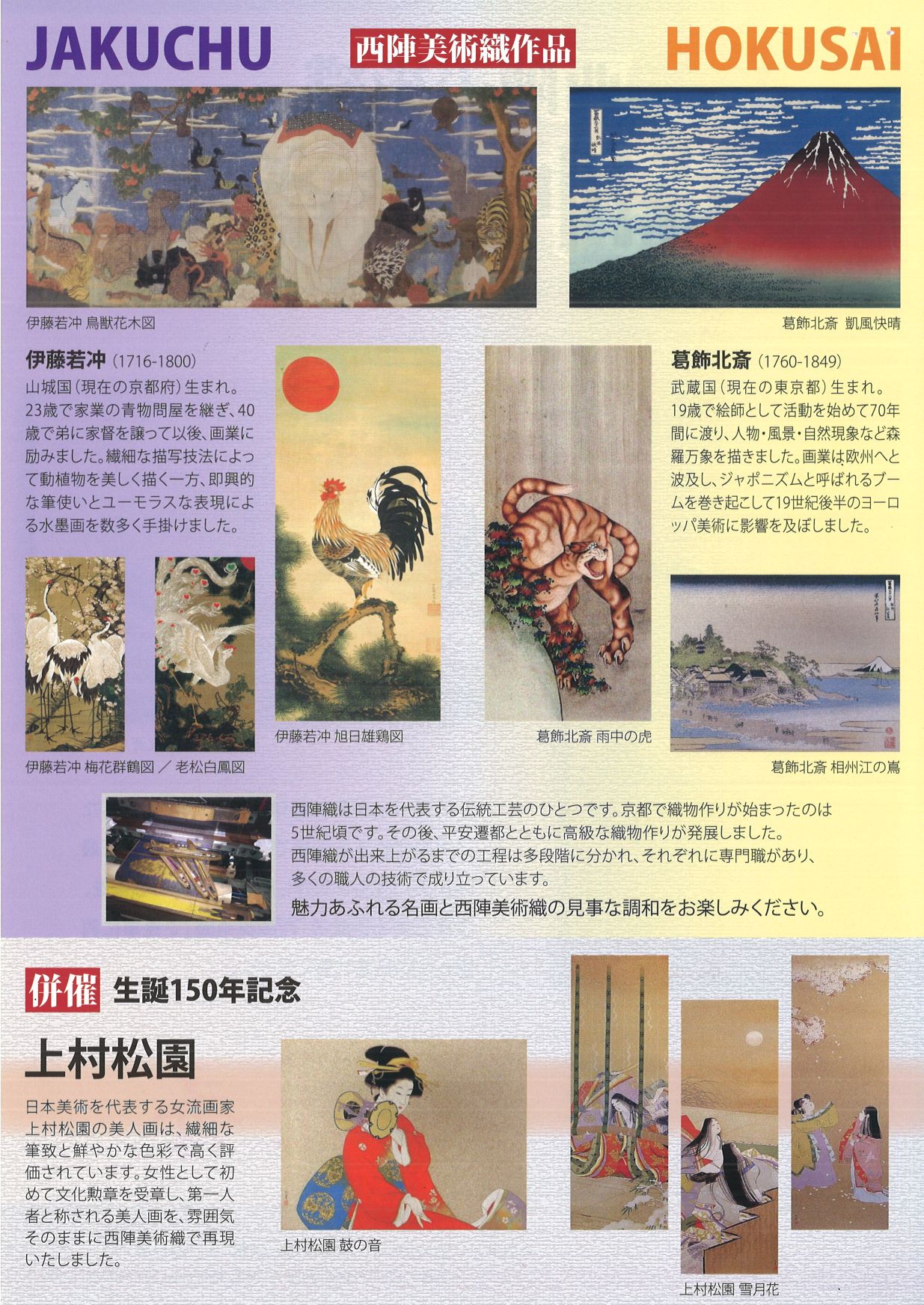 (「西陣美術織 「若冲と北斎展」リーフより)