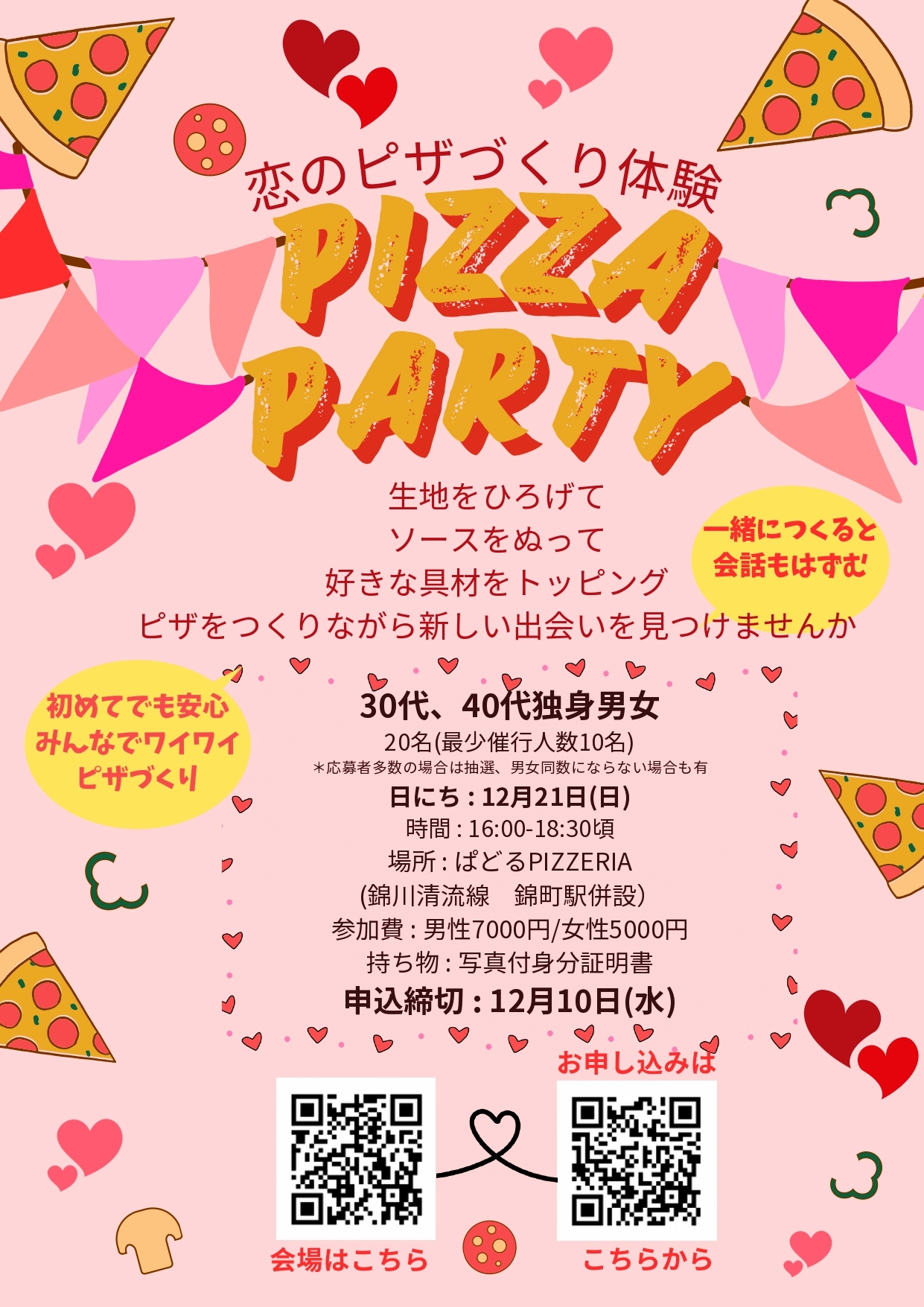 婚活イベント 恋のピザづくり体験 PIZZA PARTY 募集 12/21