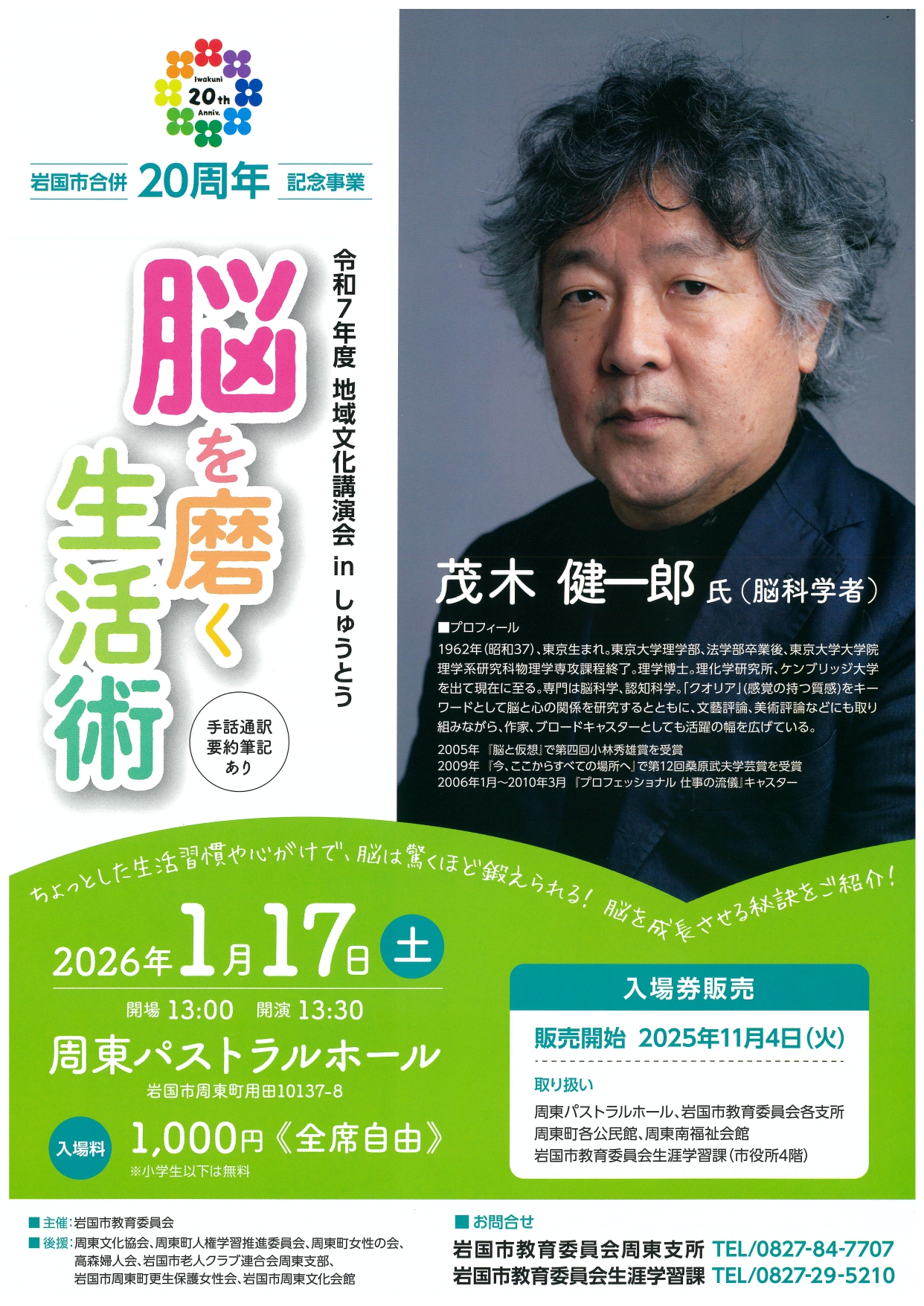 岩国市合併20周年記念事業 令和7年度地域文化講演会inしゅうとう