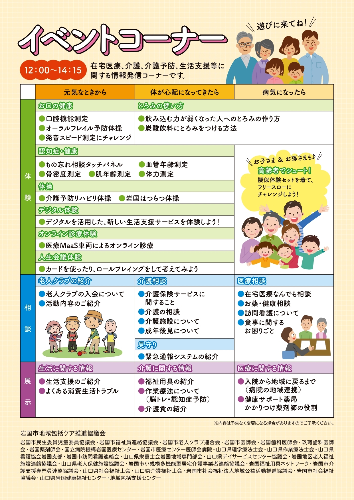 在宅医療、介護、介護予防、生活支援等についての情報発信コーナー(詳しくはチラシ裏面)