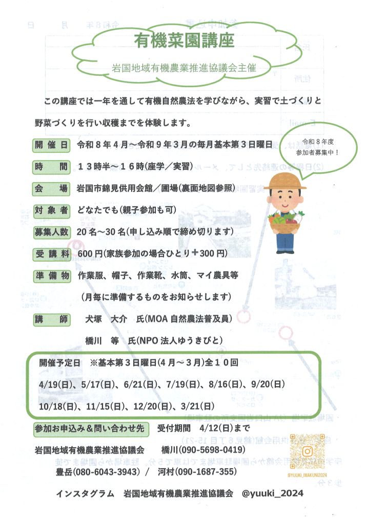 Instagram: 岩国地域有機農業推進協議会(**@yuuki_2024**)
