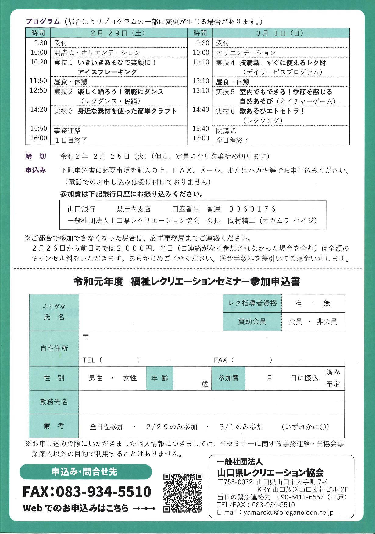 福祉レクリエーションセミナー申込