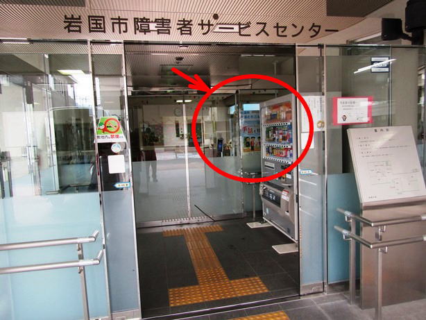 - 岩国市障害者サービスセンターの 玄関右側に設置されています。