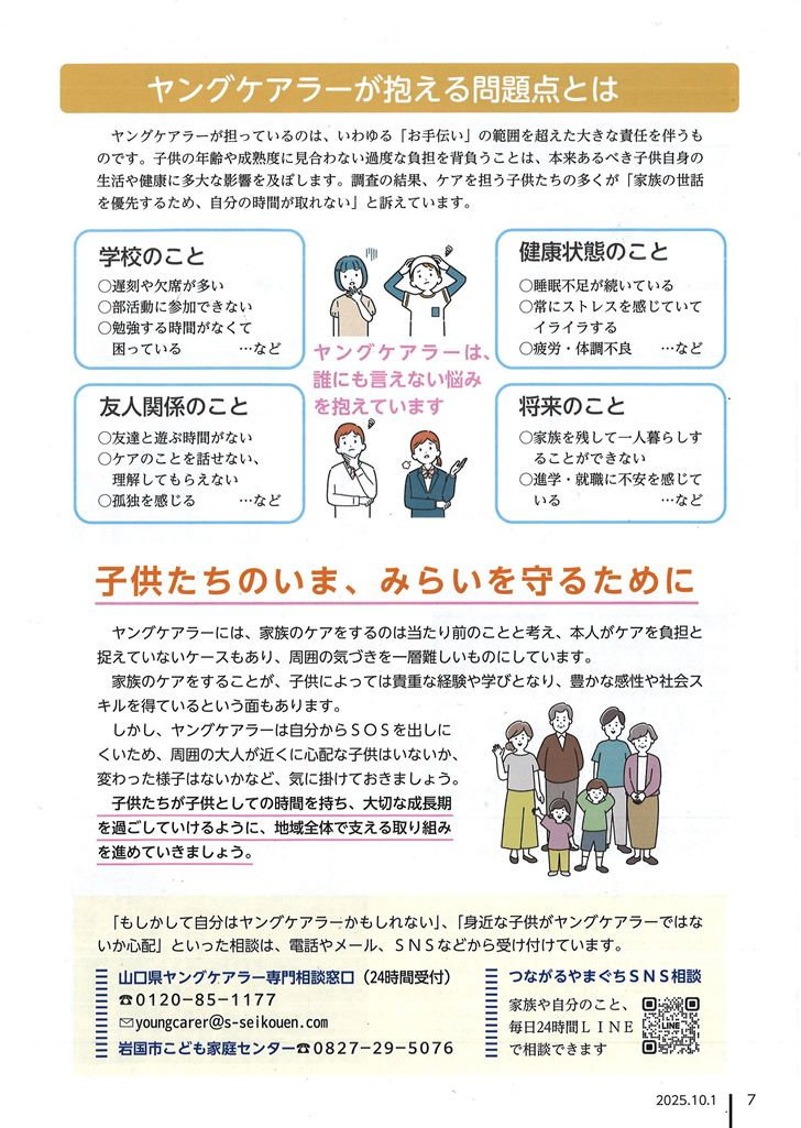 山口県ヤングケアラー専門相談窓口(24時間受付) ☎0120-85-1177