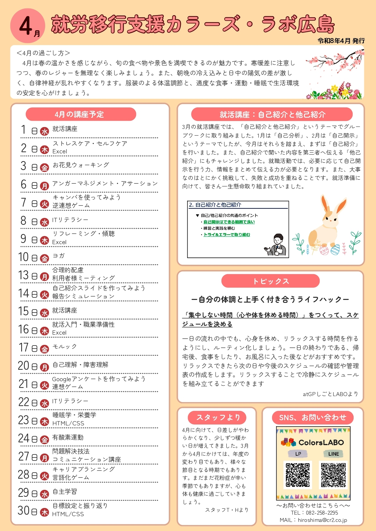 カラーズ・ラボ広島 広島通信4月(2026年)