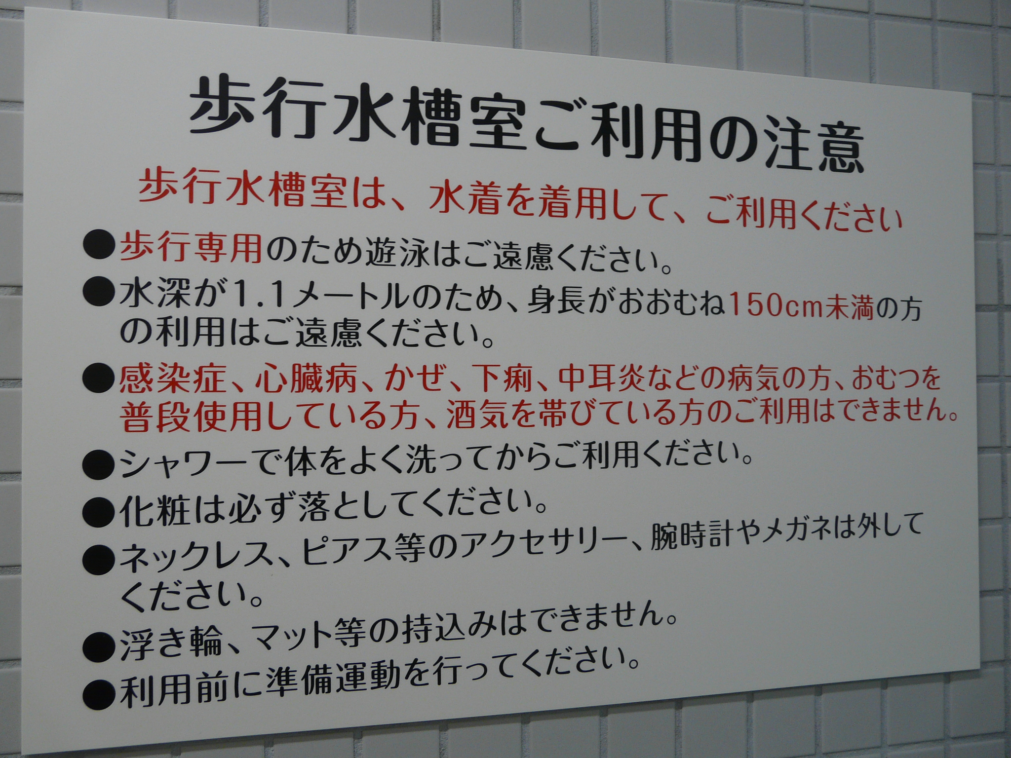 • 歩行水槽室 ・水着着用 ・歩行専用水槽 ・水深1.0m ・一周約30m