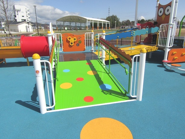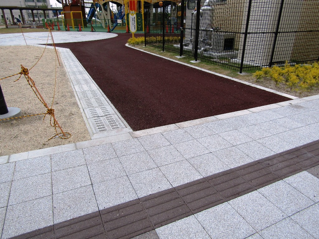- 地面はゴムチップが舗装されており転倒時のけがを防止します。