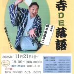 2025年11月19日 / 最終更新日時 : 2025年11月12日 ici お知らせ お寺DE落語 落語家「鈴々舎馬るこ」 11/21 「笑点特大号」若手大喜利メンバーとしてもお馴染みの、山口県防府市出身・真打の鈴々舎馬るこ(れいれいしゃ まるこ)さんが、岩国の西福寺にやってきます! 古典に独自のアレンジを加える改作派の馬るこさんの落語を、お寺の落ち着い […]