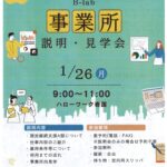 2026年1月21日 / 最終更新日時 : 2026年1月20日 ici お知らせ 【就労継続支援A型事業所 B-lab】事業所説明・見学会 1/26 【就労継続支援A型事業所 B-lab】事業所説明・見学会のご案内 就労継続支援A型事業所 B-lab(ビーラボ) では、事業所の取り組みや仕事内容を知っていただくための 事業所説明会・見学会を開催します。 一般就労を目指 […]
