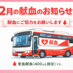 2026年2月12日 / 最終更新日時 : 2026年2月9日 ici お知らせ 2月の献血のお知らせ 2月の献血のお知らせ 献血にご協力をお願いします。 あなたの献血が、命をつなぐ大切な支えになります。 【2月15日(日)】ゆめタウン南岩国 9時30分~12時00分 13時15分~15時30分 【2月25日(水)】岩国市 […]