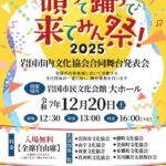 2025年11月27日 / 最終更新日時 : 2025年11月20日 ici お知らせ 唄って踊って 来てみん祭!2025 12/20 岩国市合併20周年記念 夢の華舞台! 唄って踊って 来てみん祭!2025 岩国市内文化協会合同舞台発表会 岩国市内各地域において活動する 文化団体が一堂に会し、舞台発表を行います 日時:令和7年 12月20日(土) 場所 […]