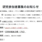 2026年3月9日 / 最終更新日時 : 2026年3月9日 ici お知らせ 研究参加者募集のお知らせ|延美体操® 参加者募集 高齢者の健康を支える「延美体操®」の効果検証にご協力いただけませんか? 岩国市福祉会館にて、65歳以上の男女を対象とした健康維持・転倒予防のための研究プログラムを実施します。塩ビパイプを使った簡単な運動「延美 […]