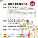 2025年10月1日 / 最終更新日時 : 2025年9月25日 ici 講演・講座・講習 犯罪被害者等支援講演会 11/7 犯罪被害者週間啓発事業 演題 最愛の娘を奪われて 講師 小谷 真樹 氏 講師プロフィール 2012年4月、京都府亀岡市で登校中の児童ら10人の列に、無免許の少年が運転する車が突っ込み、3人がなくなり7人が重軽傷を負った事 […]