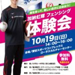 2025年10月8日 / 最終更新日時 : 2025年10月1日 ici 講演・講座・講習 加納虹輝 フェンシング体験会 10/19 【加納虹輝選手フェンシング体験会 参加者募集!】 日時: 2025年10月19日(日)14:00~16:00 場所: 愛宕スポーツコンプレックス ロータスカルチャーセンター 対象: 小学生~中学生(初心者歓迎) ※参加料 […]