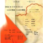 2026年1月15日 / 最終更新日時 : 2026年1月13日 ici お知らせ 祈りをこめて 如月コンサート 2/14 チャイルドライン岩国ステーション 祈りをこめて 如月コンサート 日時: 2026年2月14日(日) 13:30開演(13:00開場)15:30終演 場所: シンフォニア岩国2Fミューズホール(大会議室) 料金: 前売り […]