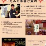 2025年11月17日 / 最終更新日時 : 2025年11月11日 ici お知らせ 宇野千代生誕百二十八年「もみじ茶会」11/25 ~明治30年(1897)11月28日誕生~ も み じ 茶 会 ご 案 内 日本を代表する女流作家、宇野千代先生の誕生日にあわせて開催される「もみじ茶会」も今年で生誕百二十八年目を迎えます。生前に先生自らが植えた生家 […]