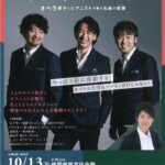 2025年9月25日 / 最終更新日時 : 2025年9月24日 ici お知らせ カントキューブ オペラ男子とピアニストが贈る名曲の歌宴 10/13 カントキューブ やっぱり歌は感動する!オペラ男子とマルチ・ピアニストが贈る秋の歌宴(うたげ) ☆3人のオペラ男子“カントキューブ”とピアニストが贈る、“オペラティック”で“ファンタスティック”なコンサート。   […]